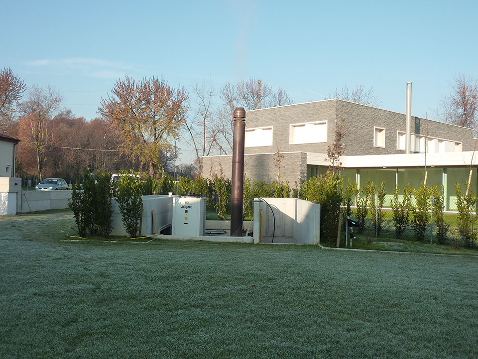 Impianto di riscaldamento a pavimento. Impianto di raffrescamento estivo a pavimento integrato da sistema di deumidificazione.