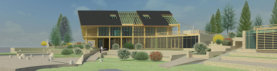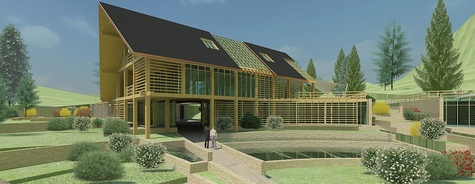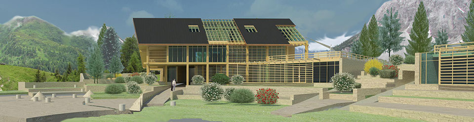 La necessità di rispettare il luogo e limitare gli impatti ha, poi, delineato la forma degli impianti progettati, scegliendo di porre al di sotto della balconata verde la maggior parte delle strutture