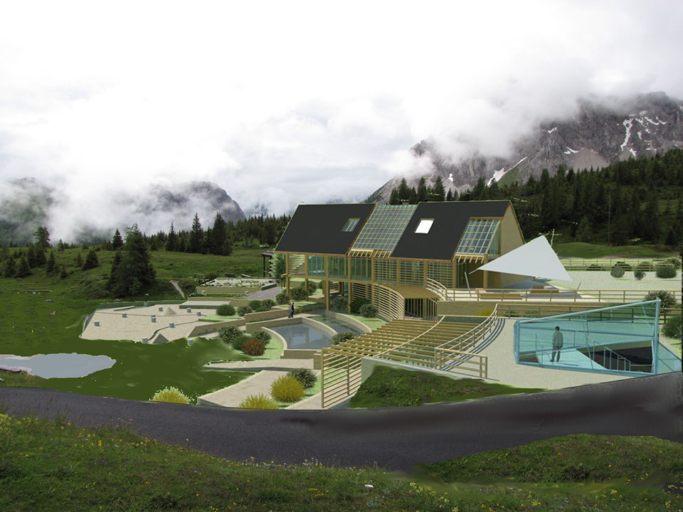 A questo punto risultava importante pensare pure ad una struttura che potesse ospitare un museo dedicato al fiume e potesse essere utilizzata anche come sala conferenze, luogo per meeting, eventi o, come detto, lezioni didattiche per le scolaresche. Cioè un sala polivalente dove poter essere informati sul Piave continuando a vedere la sua sorgente. Quindi vetrate ed aperture per ammirare il luogo in stretto rapporto e fino a poter sentire il mormorio delle acque; e spazi per esporre, proiettare o descrivere a parole i passi di storia.
